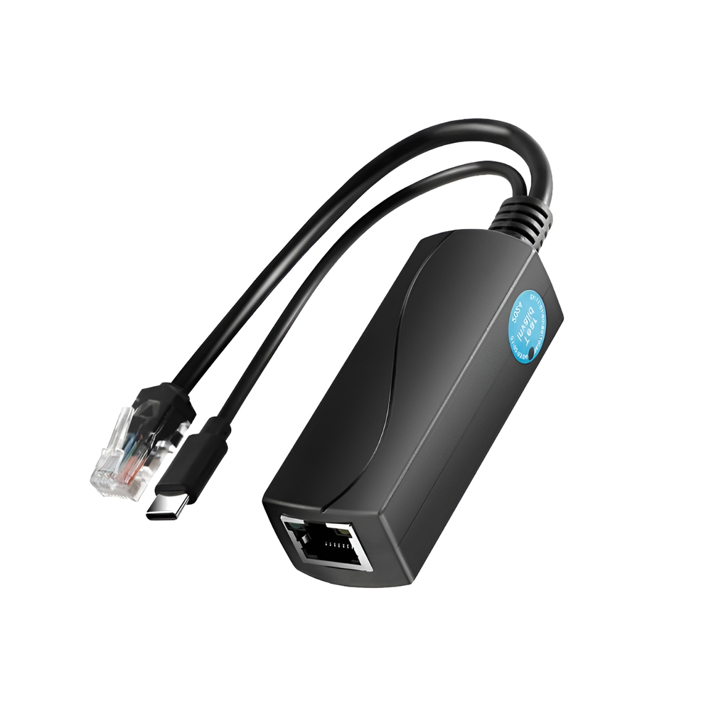 Fabricat din material ABS rezistent, splitterul este conform cu standardele IEEE 802.3af/at si suporta metode multiple de alimentare PoE. Accepta o tensiune de intrare PoE intre 44V si 57V, iar la iesire ofera 5V prin conectorul Type-C, cu un curent maxim de 2.4A. In plus, dispozitivul este prevazut cu o interfata RJ45 pentru intrarea de date si o iesire RJ45 suplimentara, asigurand compatibilitate deplina cu retelele Ethernet.