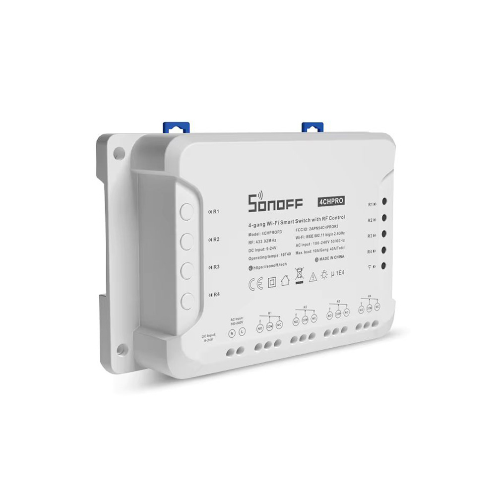 Se alimenteaza atat cu tensiune AC (100–240V) cat si DC (9–23V), suportand pana la 10A / 2200W pe fiecare canal si un total de 40A / 8800W. Conectivitatea Wi-Fi 2.4GHz permite control prin aplicatia eWeLink (Android/iOS).