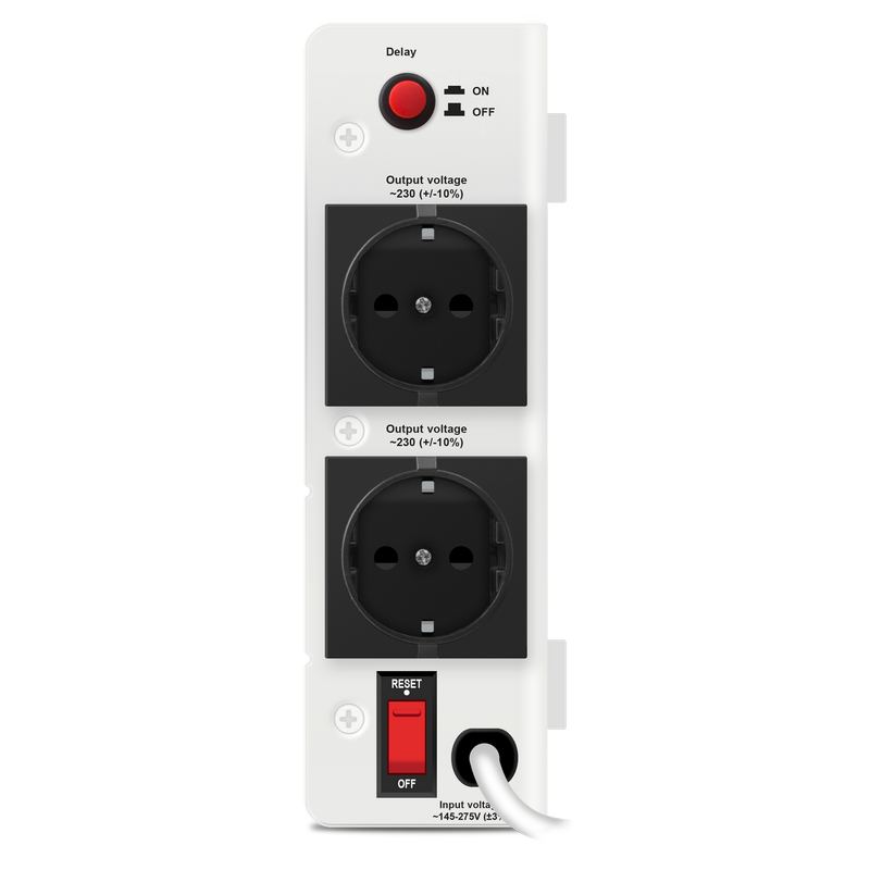 - http://www.sven.fi/ru/catalog/stabilizer/avr_slim_2000.htm AVR type relay Total power, VА 2000 Maximal output power, W 1200 Maximum load, W 1200 Input voltage, V ~140 – 260 Output voltage, V ~220 ± 10 % Input frequency, Hz 50 Output frequency, Hz 50 Output sockets 2 × СЕЕ7/4 Protection against high/low voltage in the power supply network, high-frequency and impulse interferences, overload and short circuit; built-in thermal protection Protection operating current, A 15 Typical switching time, ms ≤ 10 Indication output voltage level Indicators Delaying / protection, Working, Regulating Fuse bimetallic circuit breaker Input plug 1 × СЕЕ7/7 Environmental temperature, °С 0 to +40 Relative humidity, % 10 ~ 90 (without condensation) Cable length, m 1.3 Case material metal Dimensions, mm 370 × 200 × 60 Weight, kg 4.6 Color light grey Product life 5 years SLIM METAL HOUSING WITH WALL-MOUNTING FASTENERS