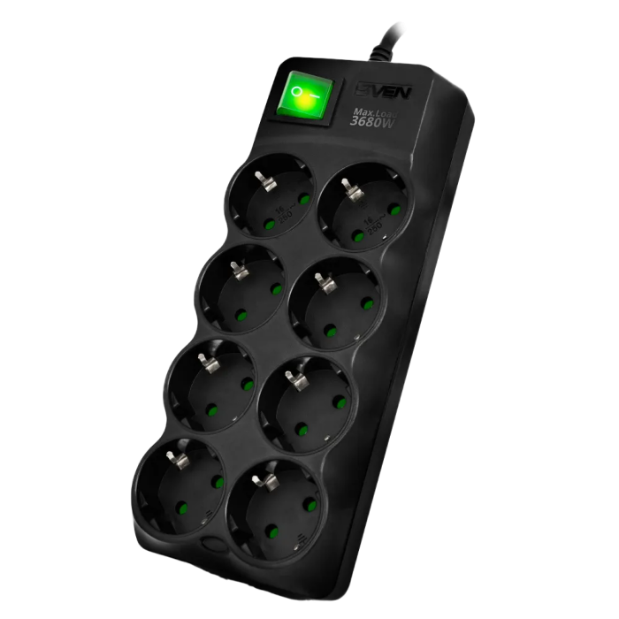 Surge Protector 8 Sockets, 1.8m, Sven "SF-08E-16", Black, flame-retardant material, 16A
