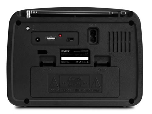 SVEN SRP-555 Black-Silver, FM/AM/SW Radio, 3W RMS, built-in audio files player from USB-fash, microSD and SD card storage devices, telescopic swivel antenna, HEADPHONES JACK ,built-in battery