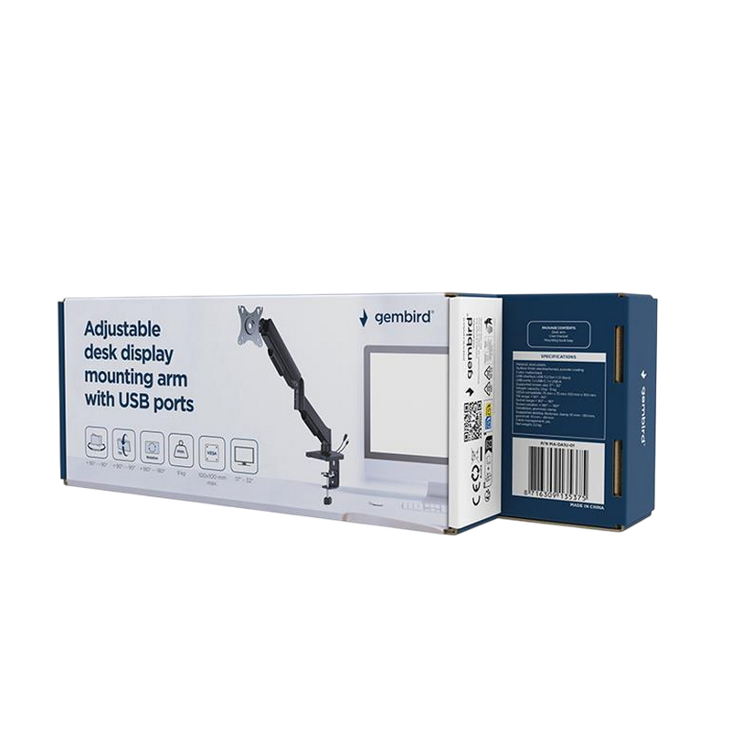 Table/desk 1-display mounting "MA-DA1U-01" Gembird (rotate,tilt,swivel),17”-32”,up to 9 kg,VESA:75x75,100x100
