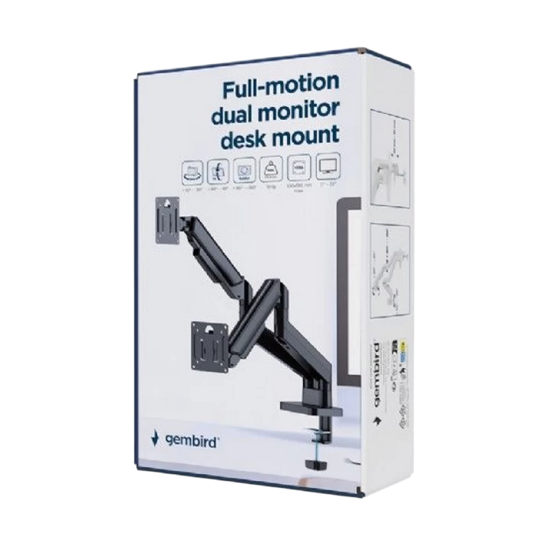 Table/desk 2-display mounting "MA-DA2-06" Gembird (rotate,tilt,swivel), 17”-32”, up to 9 kg, VESA:75x75, 100x100