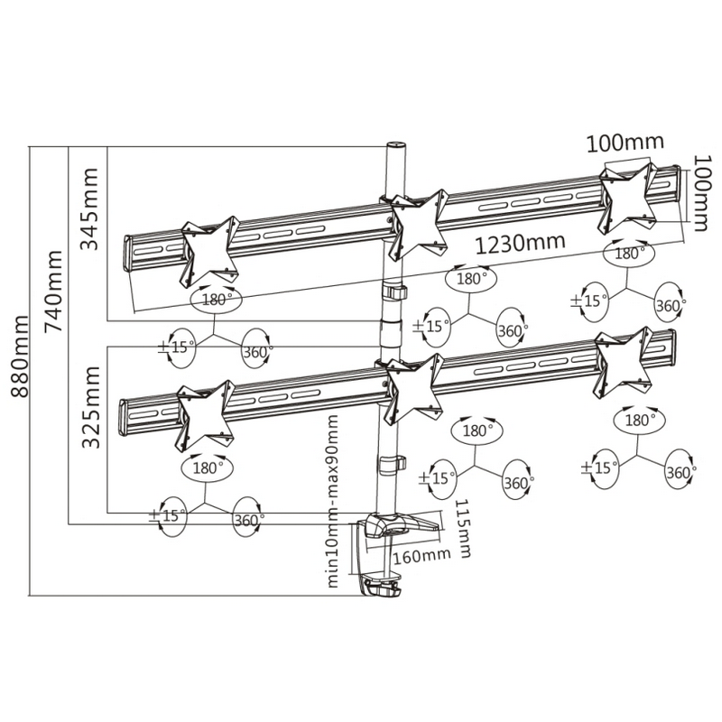 Table/desk stand for 4 monitors Reflecta PLANO Desk 23-1010Q, 13"-23 ", 75x75, 100x100, 8kg/bracket.