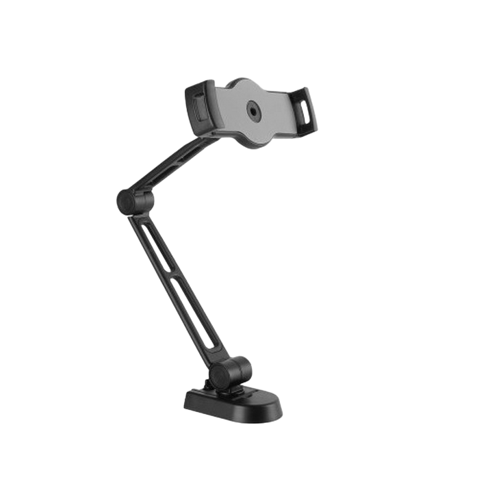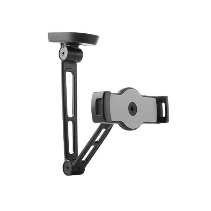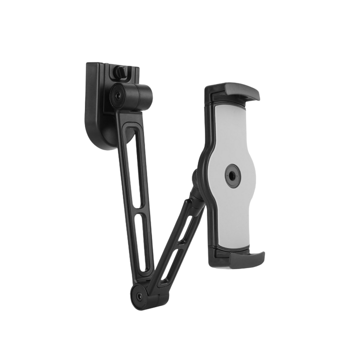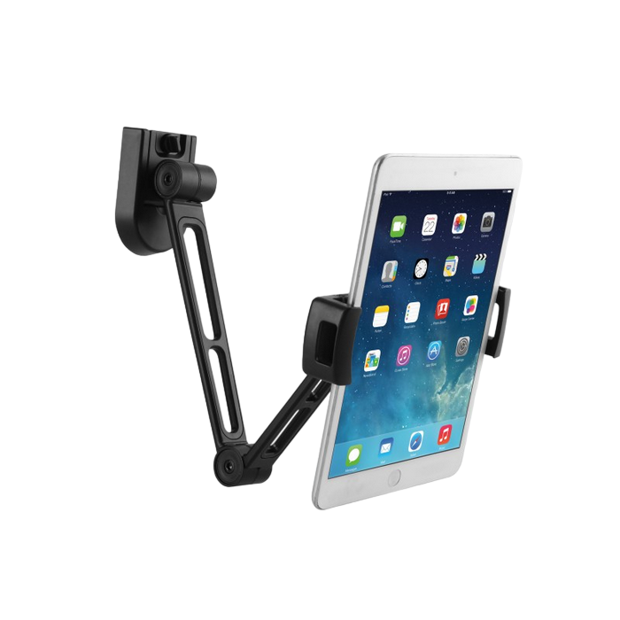 https://reflecta.de/en/tablets-smartphones/609-reflecta-tabula-wall-ii-universal-tablet-mount.html 2-in-1 Multi-Purpose Tablet Holder (Under Cabinet/Wall Mount) For Most 4.7"-12.9" Tablets The reflecta Tabula Wall II tablet mount with double arms makes it easy for you to mount your device to a wall or on a flat surface underneath a cabinet. By mounting your device up and out of the way, you are protecting it from potential harms, such as heavy books being placed on it or spilt water. Holder with rotate, tilt and swivel functions, so you can effortlessly change the view of your device, portrait to landscape or vice versa. Swiveling Arms: offer maximum viewing flexibility Rotation: for easily holding your tablet PC in portrait or landscape orientation Soft Rubber Cushions: hold your device securely without scratches or damages