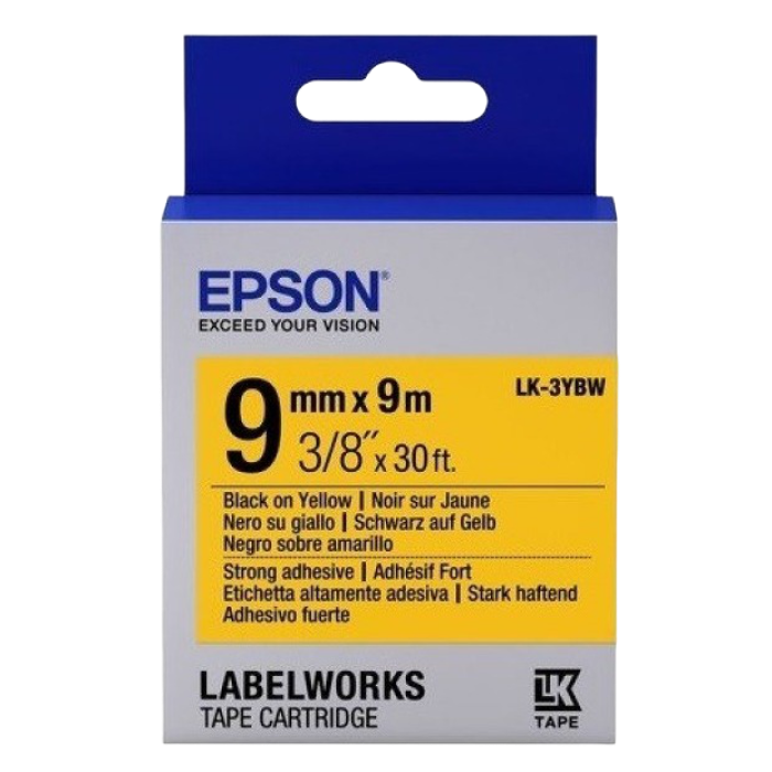 Tape Cartridge EPSON 9mm/9m Strong Adhesive, Black/Yellow, LK-3YBW C53S653005