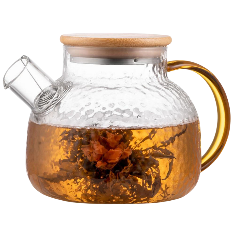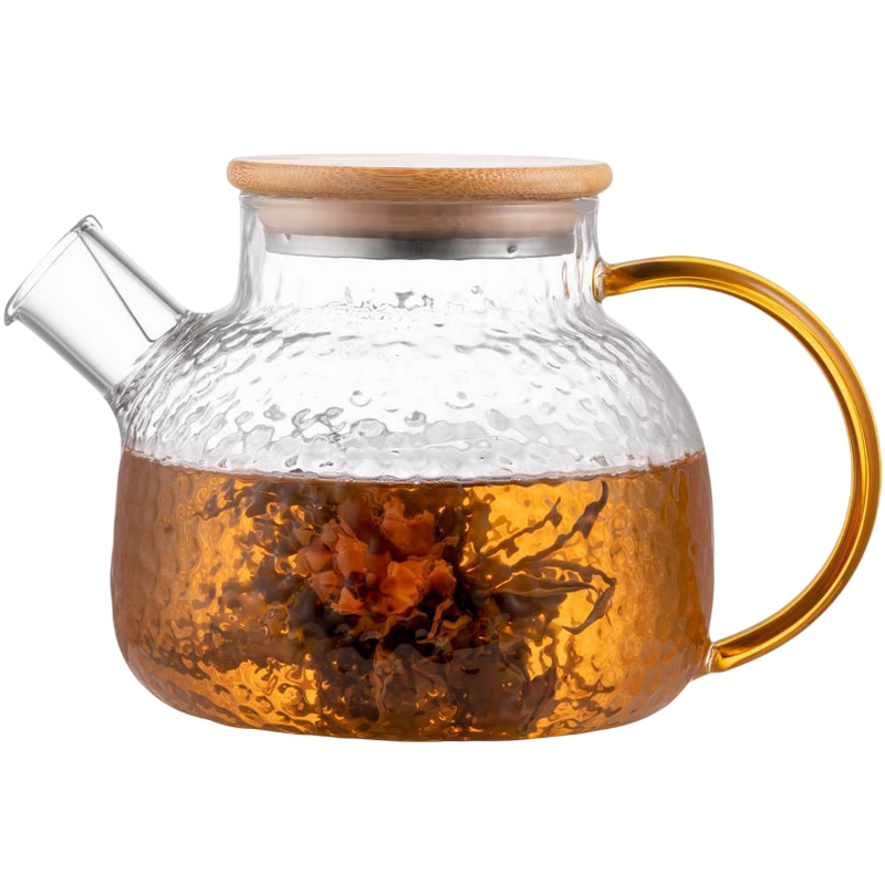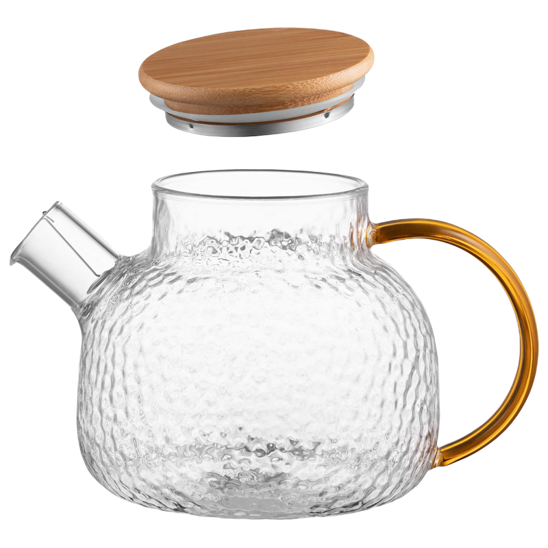 Tipul vasului: Ceainic cu infuzor Volum : 1 L Materialul carcasei: Sticlă Materialul capacului: Bambus