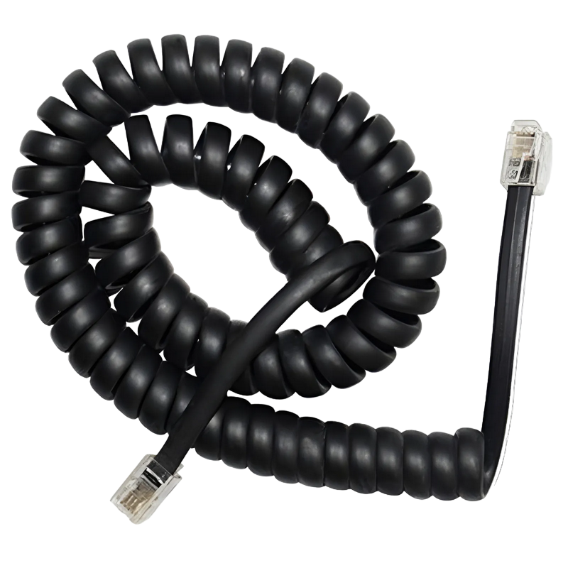 Telephone handset spiral cord, RJ10 (4P4C), 2 m, black, TC4P4CS-2M