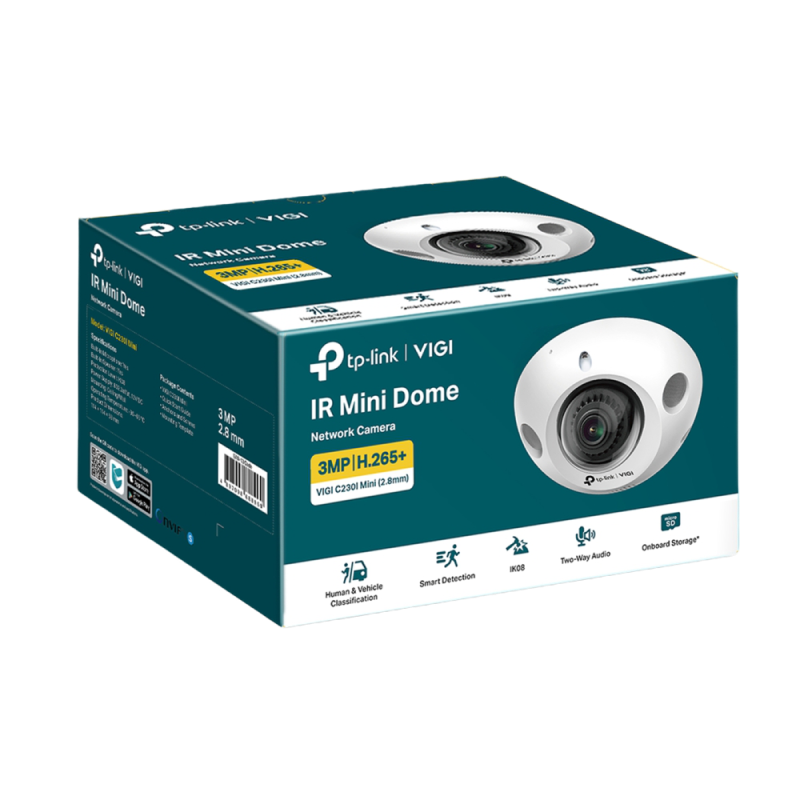 // 3MP Super-High Definition: The VIGI C230I Mini camera comes with 3MP—more than enough pixels to pick up some of the more discrete details. Human & Vehicle Classification: Distinguishes humans and vehicles from other objects, so you receive more accurate event notifications. Smart Detection: Receive notifications and check feeds when someone crosses a boundary, enters an area you've set, obstructs the camera, or removes/abandons objects. Small but compact with wide views: With a small, compact form factor and a 2.8 mm ultra-wide angle lens, the VIGI C230I Mini camera is ideal for corridors, elevators, small warehouses, and convenience stores, where space is limited and a wide view is required. IK08 Vandal-Proof: Equipped with a vandal-proof dome encasing, the VIGI dome camera withstands damage and provides more reliable security protection in important scenarios, such as ATMs, corridors, and checkout counters. H.265+: Without using any extra bandwidth, your cameras transmit compressed crystal-clear video to save disk space, ease network loads, and reduce monitoring costs without sacrificing image quality. Smart Video Enhancement: VIGI’s professional technologies process videos to greatly improve their quality that is vital to your monitoring, including Smart IR, WDR, 3D DNR, and Night Vision. Corridor Mode: Allows you to change the image aspect ratio from 16:9 to 9:16, and helps to monitor long and narrow areas.