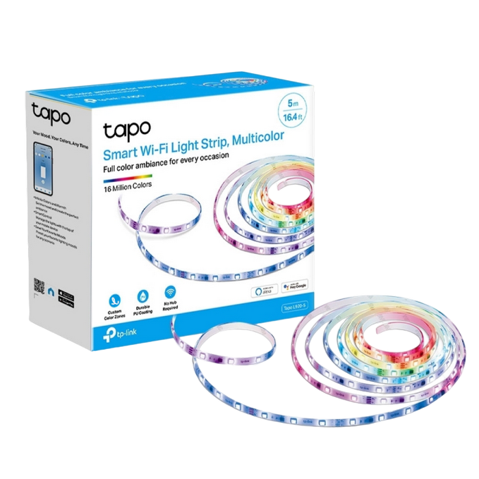 // Multiple Color & Effects - Control 50 separate color zones and bring vibrant joy to your life. External Protection – Easy maintenance and extended lifespan thanks to PU coating. No Hub Required - Connect to your home’s secure Wi-Fi network. No need for a hub or extra equipment. Flexible Installation - Cut it to whatever length you want and attach it to any surface with the 3Madhesive. Preset for Convenience - Found your favorite lighting for watching movies? Save it as a setting you can simply select for future movie nights. Schedule & Timer - Create schedules and count plans to turn on/off with the brightness/color you set. Away Mode - Simulate someone being at home to frighten away, unwanted visitors. Connect It Your Way - Use it with your smart assistant, a hub, or connect directly to the Tapo App. Control the Light Strip however you want. Voice Control - Use simple voice commands to control your light strip with Alexa or Google Assistant.