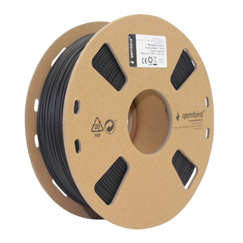 TPE 1.75 mm, Flexible Black Filament, 1 kg, Gembird 3DP-TPE1.75-01-BK