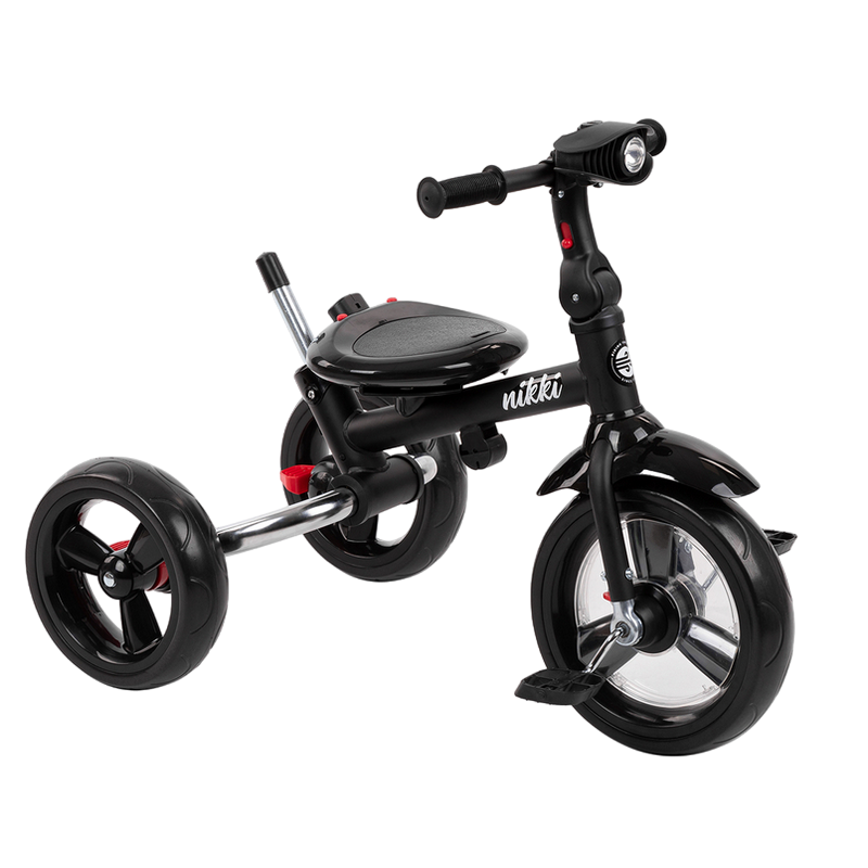 3 положения регулировки высоты ручки от 93 до 98 см Съемный мягкий защитный борт Крыло переднего колеса Фара с 3 функциями и звуковым эффектом