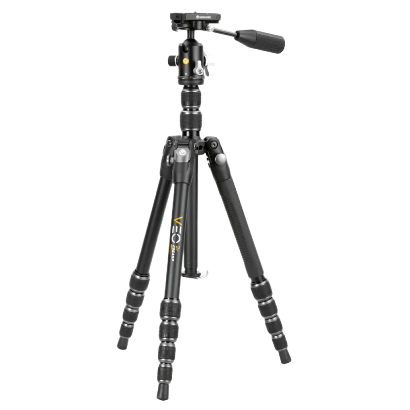 Aluminum middle size travel tripod with ARCA compatible VEO2 BP-50T ball head with removable video handle and QS-72T quick release plate with built-in smartphone holder. Quickly ready for use thanks to convenient twist locks Three easily adjustable leg angles - from high to low, plus a reversible center column for macro photography. Converts to a monopod in just three easy steps The tripod shoulder is robustly made from a block of aircraft aluminum and has a spirit level and two additional 3/8-inch threads for adding additional accessories ARCA compatible VEO2 BP-50T ball head with removable video handle and QS-72T quick release plate with built-in smartphone holder. SCOPE OF DELIVERY: VEO3T 235ABP + Spikefeet + Premium tripod bag + smartphone holder + Bluetooth remote control + low angle adapter + Allen key and 3/8 "to ¼" adapter. Working height 1550 mm Leg material aluminum Leg diameter 23mm Weight 1745 g Tripod head VEO2 BP-50T Leg segments 5 Low-angle height 140 mm Monopod max. Length 1580 mm Pack size 410 mm Quick release plate QS-72T Standard size 1155 mm Load capacity 8 kg