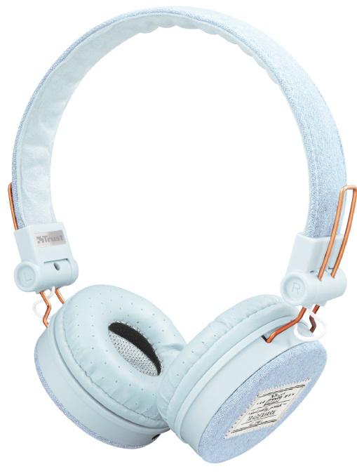 Trust Fyber, On-ear Stereo headphones with denim design, 40 mm, 20 Hz - 20000 Hz, 3.5mm, Blue Воспроизведение звука Стерео Аудиоканалы 2.0 Частотная характеристика 20 Гц - 20000 Гц Размер драйвера 40 мм Импеданс 32 Ом Драйверы 2 Чувствительность 102 дБ