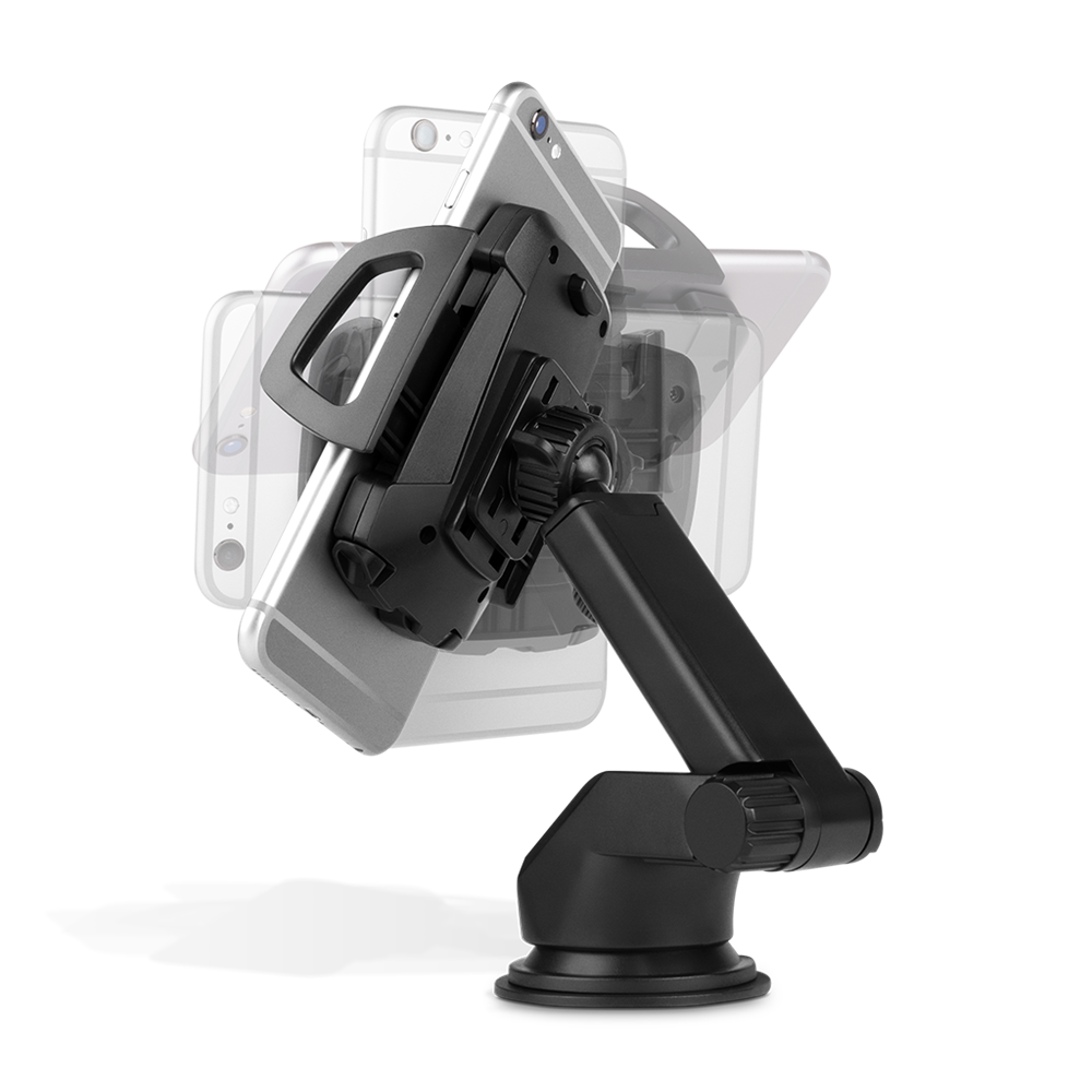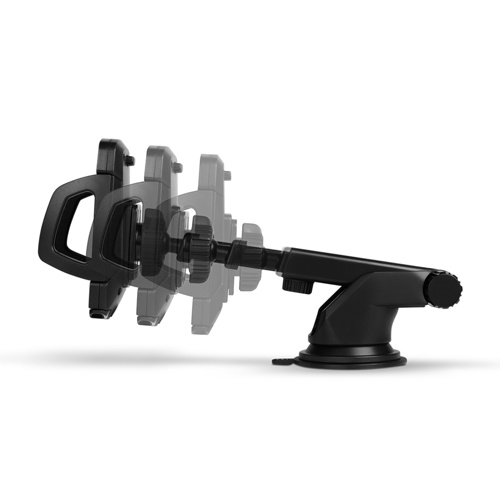 Este echipat cu o ventuza puternica, care se fixeaza ferm pe parbrizul sau pe tabloul de bord al masinii tale. Ventuza are capacitatea de a asigura o prindere sigura chiar si pe suprafete curbate sau texturate, oferindu-ti incredere in stabilitate in timpul utilizarii.