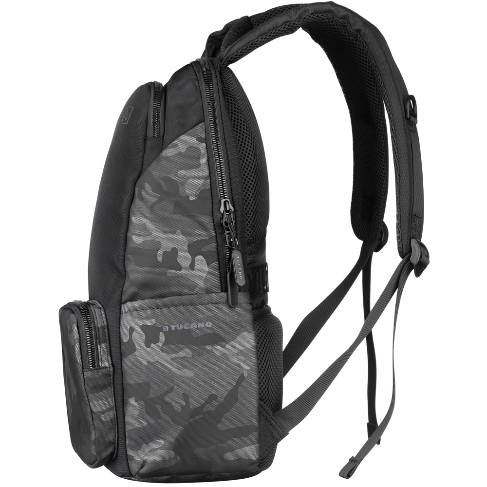 Design Camouflage: Culoare si model de camuflaj, conferind un aspect modern si distinctiv. Compartiment principal: Bine captusit, cu separator dedicat pentru laptop, asigurand protectie suplimentara si organizare eficienta. Buzunare suplimentare: Pentru organizarea accesoriilor personale, cum ar fi telefonul mobil, cartile de vizita, pixuri si altele. Buzunar frontal cu fermoar: Acces rapid la obiectele esentiale, cum ar fi cheile, portofelul sau documentele de calatorie. Confort si Ergonomie