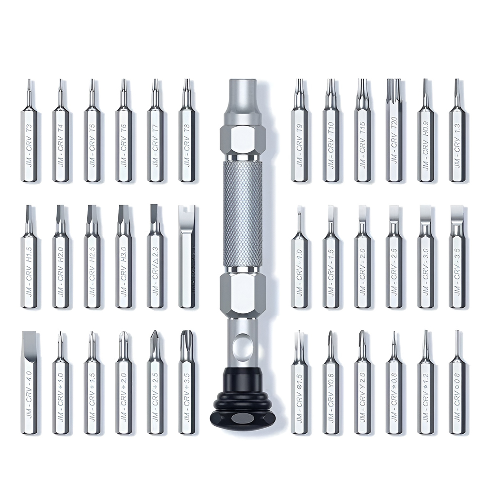 Set: Extensie magnetica Phillips - 1.0, 1.5, 2.0, 2.5, 3.5, Flathead - 1.0, 1.5, 2.0, 2.5, 3.0, 3.5, 4.0 Pentalobe - 0.8, 1.2 Torx - T3 - T10 + T15, T20 Tri-wing - 0.8, 2.0 Spanner - 1.6 Stea - 0.8, 1.2 Pozidriv - Y0.8, Y2.0