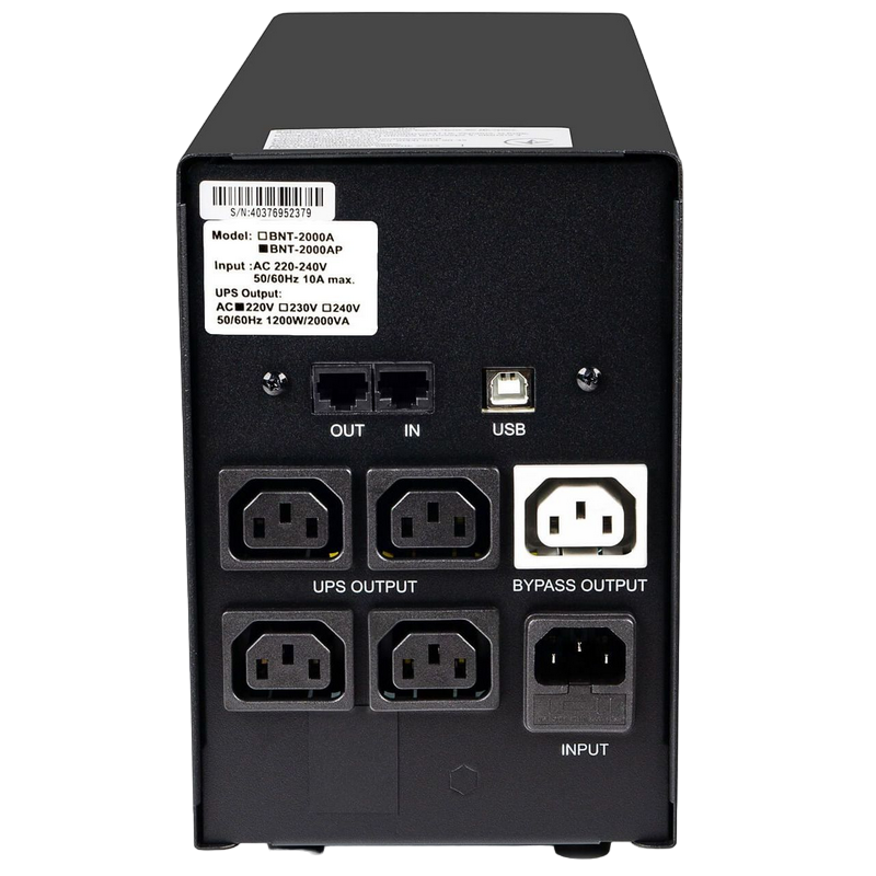 UPS PowerCom BNT-2000AP 2000VA/1200W Line Interactive, AVR, RJ45, USB, 5*IEC Sockets