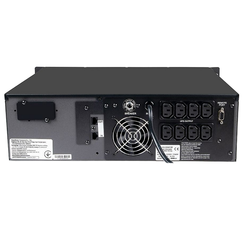 --- https://www.upspowercom.com/UPS-KRM.jsp Model: PowerCom King RM KIN-3000AP RM Form: Rack 3U Capacity(VA): 3000 VA Capacity(Watts): 2400 W Key Advantage: Line-Interactive UPS Design Simulated Sinewave Output Build-in AVR for Fluctuating Voltage EMI / RFI Noise Filter Applied Surge, Short Circuit, Overload Protections INPUT Voltage 220 / 230 / 240 Vac Voltage Range 165 - 300 Vac Frequency Range 50 / 60 Hz (Auto Sensing) OUTPUT Waveform Simulated Sine Wave Voltage 220 / 230 / 240 Vac Frequency 50 / 60 Hz ± 0.5 Hz Transfer Time 2 - 4 ms(Typical) PROTECTION Full Protection Overload, Surge, Short Circuit Tele Communication RJ11 / RJ45 BATTERY Sealed, Maintenance Free Type&Quantity: 4*12V 9Ah Typical Recharge Time: 8 Hr to 90% Indicator: LED/LCD Panel Communication Port: RS232, USB(B-type) PHYSICAL Dimensions(WxDxH)(mm) 428 x 486 x 130 Weights(Kgs) 32,7