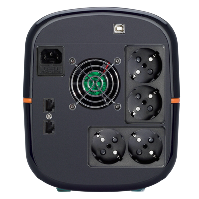 https://tuncmatik.com/en/products/digitech-pro-1600va/ Product Code TSK1653 Capacity / Power 1600 VA / 960 W Display LCD Pane Input Voltage 220 / 230 / 240 VAC Voltage range 162-265 VAC Frequency 50 / 60 Hz ± 10% Output Voltage 220 VAC Voltage range ± 10% Frequency range (Synchronized) 50 / 60 Hz ± %4 Frequency range (Battery mode) 50 ± 0.25 Hz - 60 ± 0.3 Hz Transfer time 2 - 6 msec, 10 msec max. Waveform Simulated sine wave Output connection 4 x Schuko Battery Type & number of battery 12V 9Ah x 2 Charge time 4-6 hours for recharging up to 90% capacity Charge voltage 27.0 VDC Charge current 1.0 A Indicators & Alarm LCD indicator AC mode, Battery mode, Fault conditions Alarm Battery mode, Low battery, Overload, Fault Management USB communication port Windows¨ 98/2000/2003/XP/Vista/2008, Windows¨ 7/8, Linux, MAC RJ11/45 protection port Phone - Network - Modem Protection Dimensions & Weight D x W x H (mm) 392 x 177 x 211 Net weight (kg) 10.7