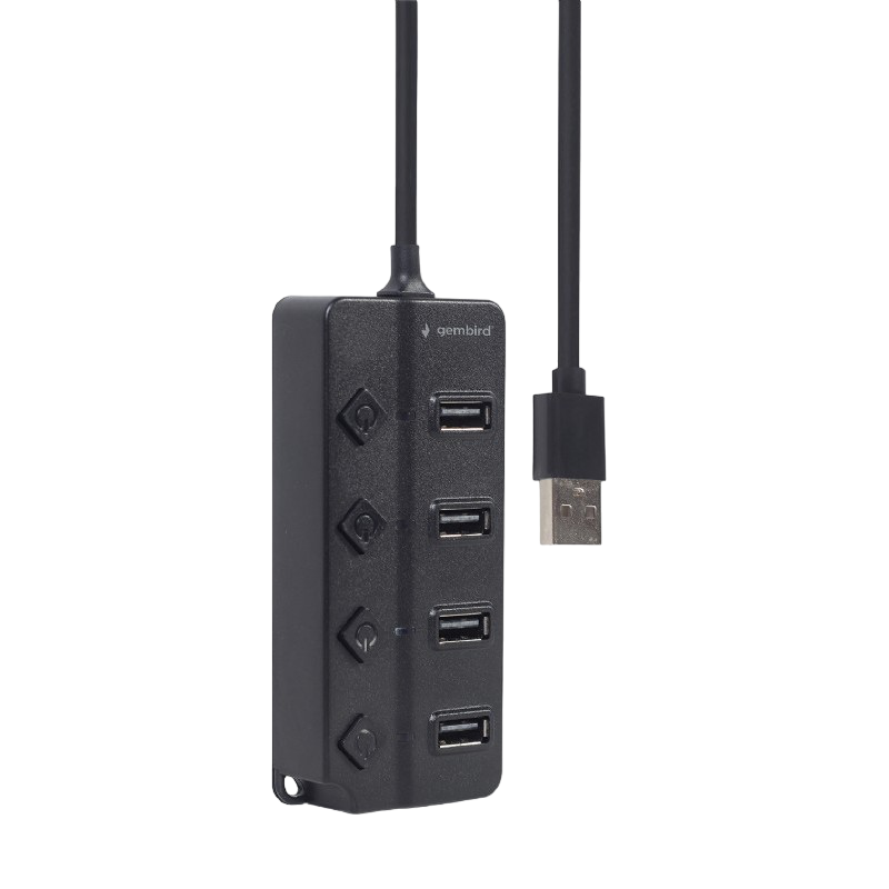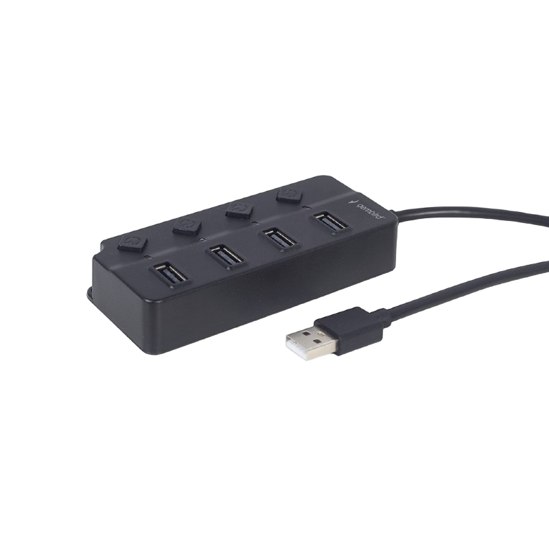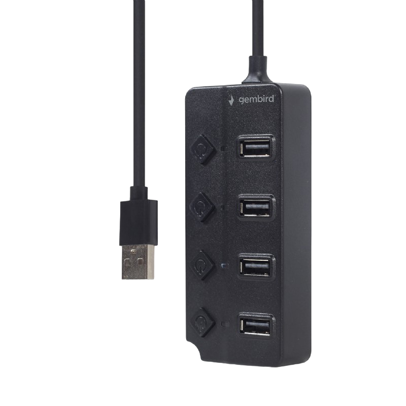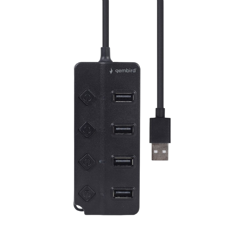 USB 2.0 Hub 4-port with switches, cable 80 cm, Gembird "UHB-U2P4P-01", Black