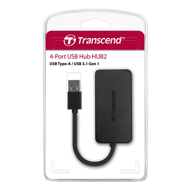 USB 3.0 Hub 4-port Transcend "TS-HUB2K" Black (1xUSB-A 3.0 to 4xUSB-A 3.0 5Gb/s)