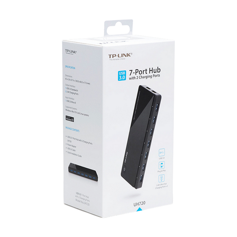 USB 3.0 ports offer transfer speeds of up to 5Gbps, 10 times faster than standard USB 2.0 The 7 data transfer ports mean you don't have to switch between devices Two exclusive 5V/2.4A charging ports intelligently recognize and optimally charge attached iOS and Android devices *Note: Does not require drivers for Windows 10/ 8.1 / 8 / 7 / Vista / XP or Mac OS X and Linux systems. Backward compatible with USB 2.0/1.1 and the actual transmission speed is limited by the setting of the device connected.