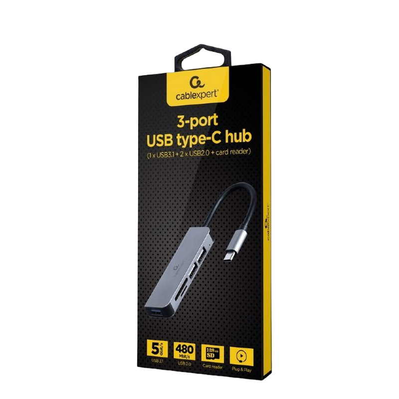 USB 3.0 Hub: Type-C to 2*USB2.0/1*USB3.1/SD/MicroSD, Gembird "UHB-CM-CRU3P1U2P2-01"