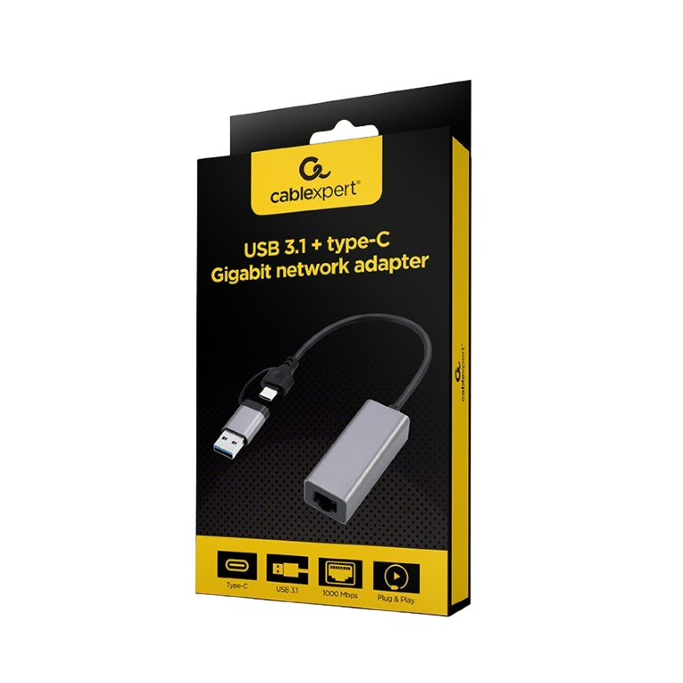 USB 3.1 + type-C Gigabit network adapter Cablexpert, Space grey, A-USB3AC-LAN-01