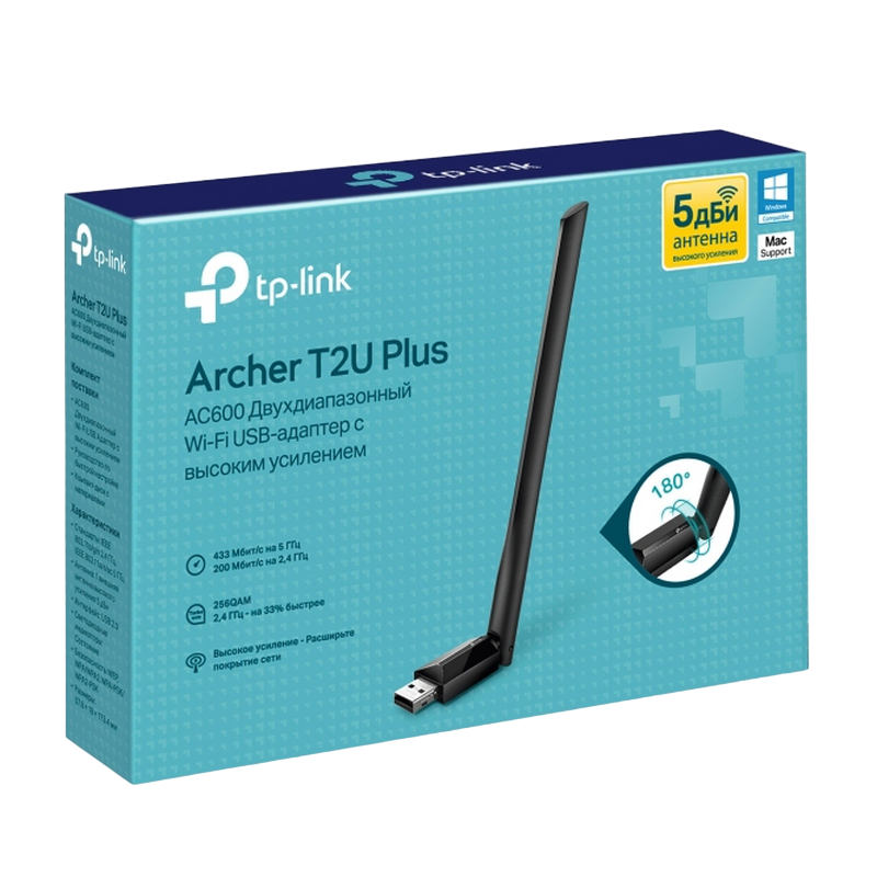 // High-Speed Wi-Fi: 256QAM support increases the 2.4 GHz data rate from 150 Mbps to 200 Mbps, 200 Mbps on the 2.4 GHz band and 433 Mbps on the 5 GHz band, ensure you fully enjoy fast AC Wi-Fi. Dual Band Wireless: 2.4 GHz and 5 GHz band provide flexible connectivity, giving your devices access to the latest dual-band Wi-Fi router for faster speed and extended range High-Gain Antenna: A 5dBi high-gain antenna greatly enhances the reception and transmission signal strength of the USB adapter Supports the Latest Operating Systems: Fully compatible with Windows 10/8.1/8/7/XP and Mac OS X