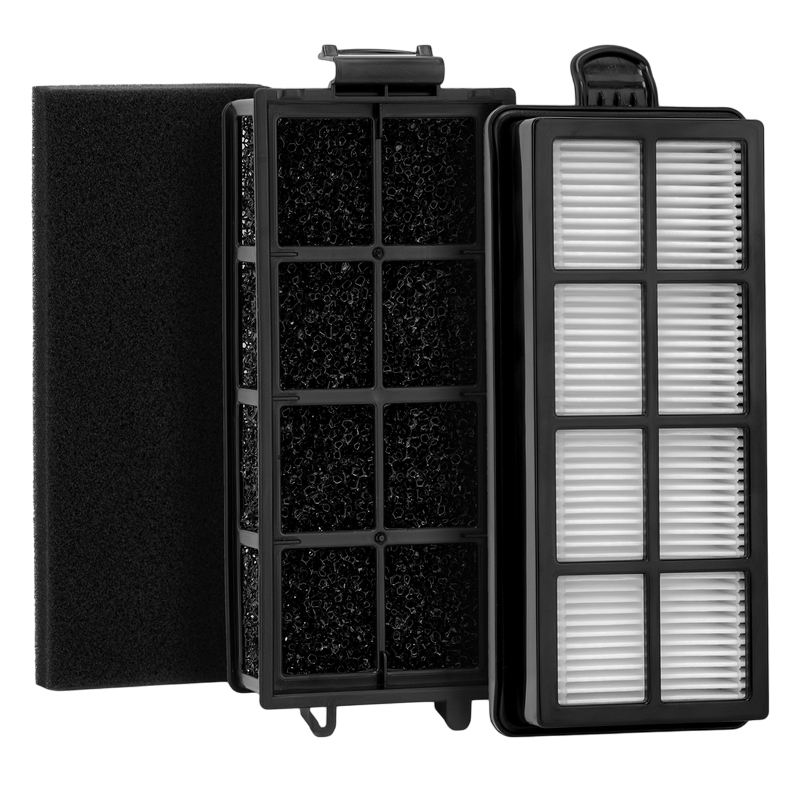 Material: plastic, cauciuc spumă, microfibră Schimbarea filtrelor este simplă și ușoară