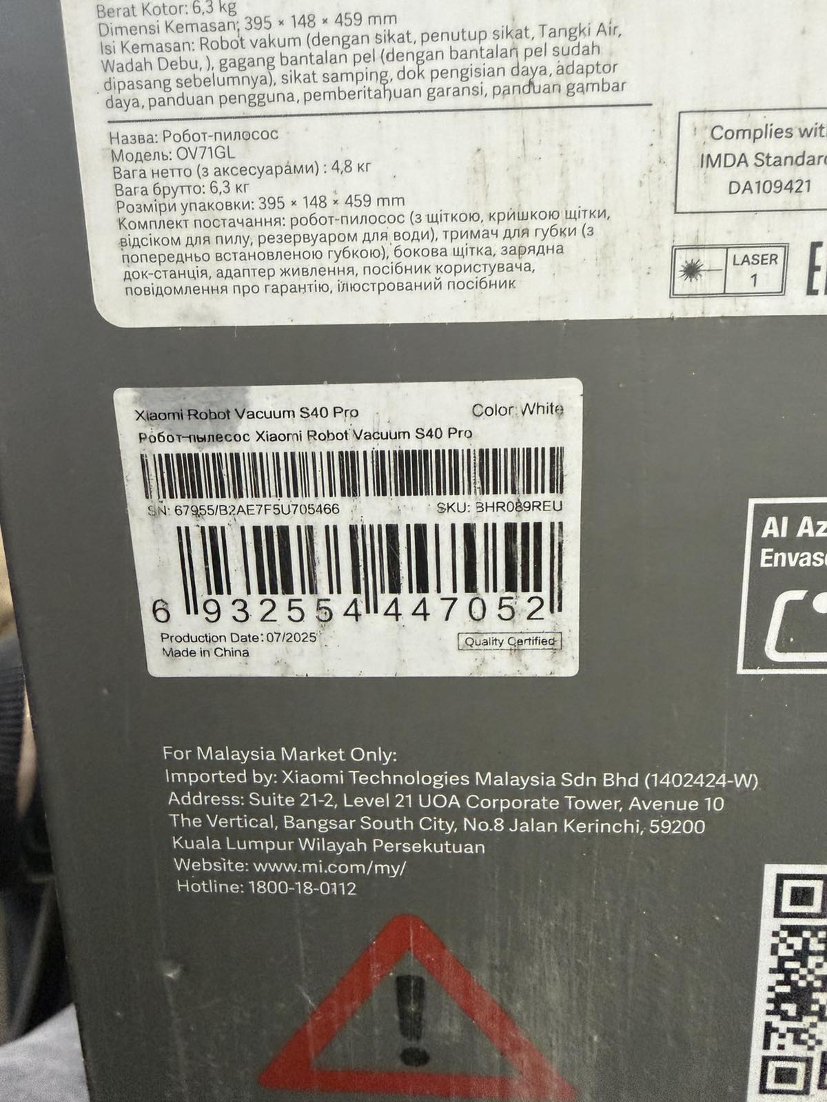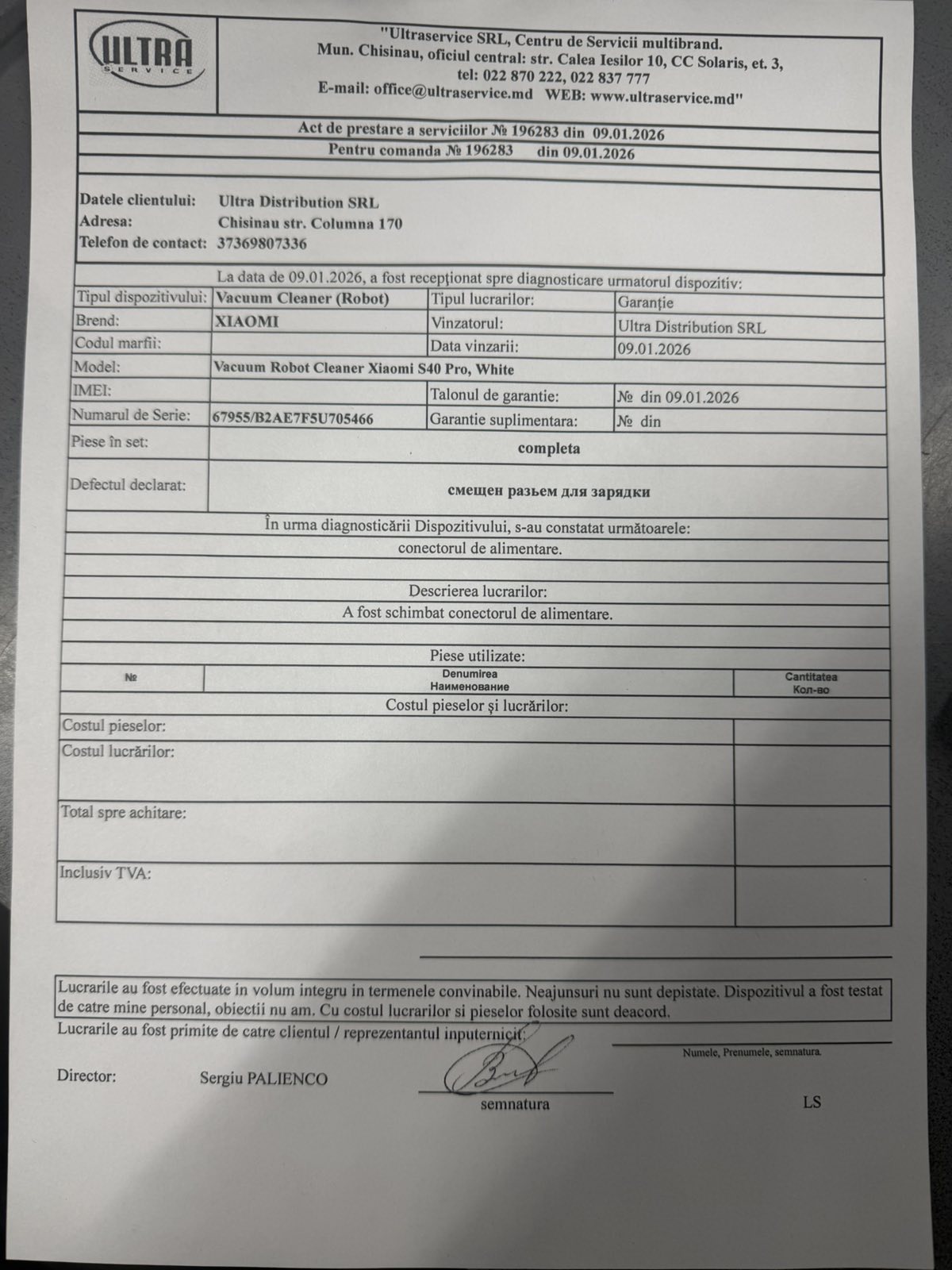 Schimbul conectorului de alimentare,zgarieturi pe suprafata https://www.mi.com/global/product/xiaomi-robot-vacuum-s40-pro/specs/