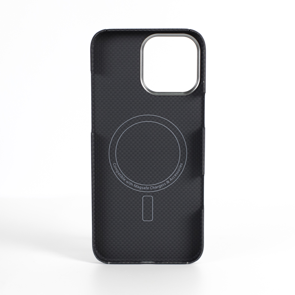 Husa include un inel magnetic Magsafe integrat, pozitionat cu precizie pentru a se alinia ideal cu functiile telefonului.