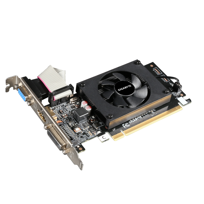 // GeForce® GT 710, 2GB DDR3, 64 bit, Engine 954MHz, Memory 1600MHz, Active Cooling, DVI-D *1, HDMI *1, D-Sub*1, Low profile bracket included https://www.gigabyte.com/Graphics-Card/GV-N710D3-2GL#ov