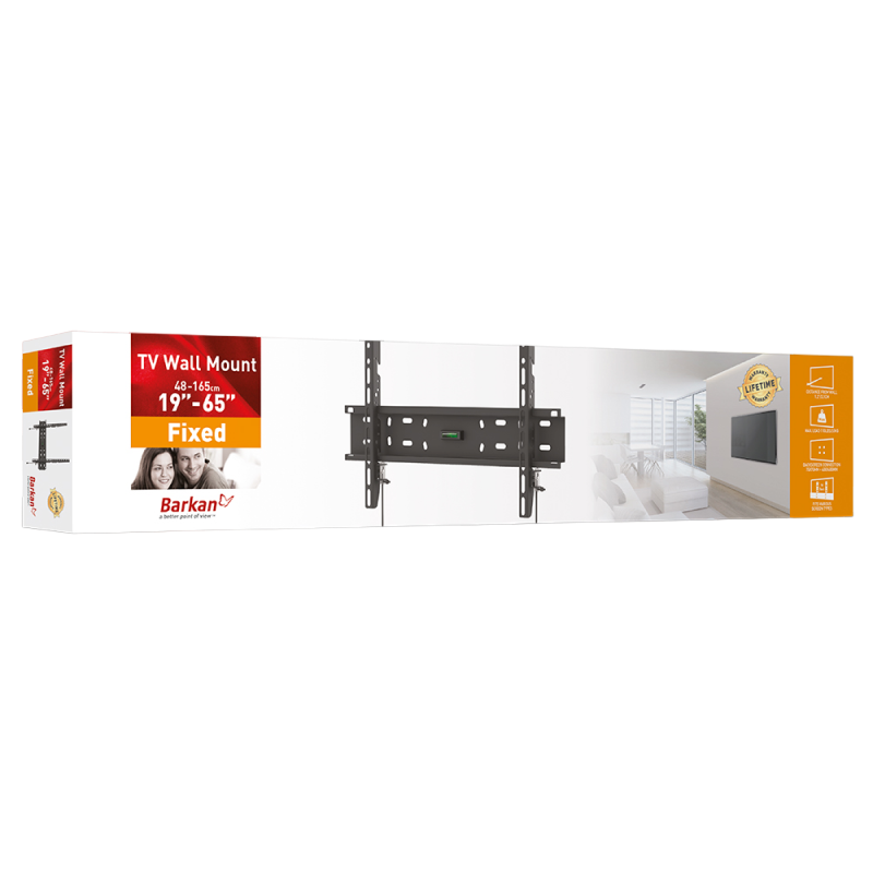 Wall Mount Barkan ''E30'' Black 19" - 65" Fixed, max.50kg, VESA mm: up to 400x400mm