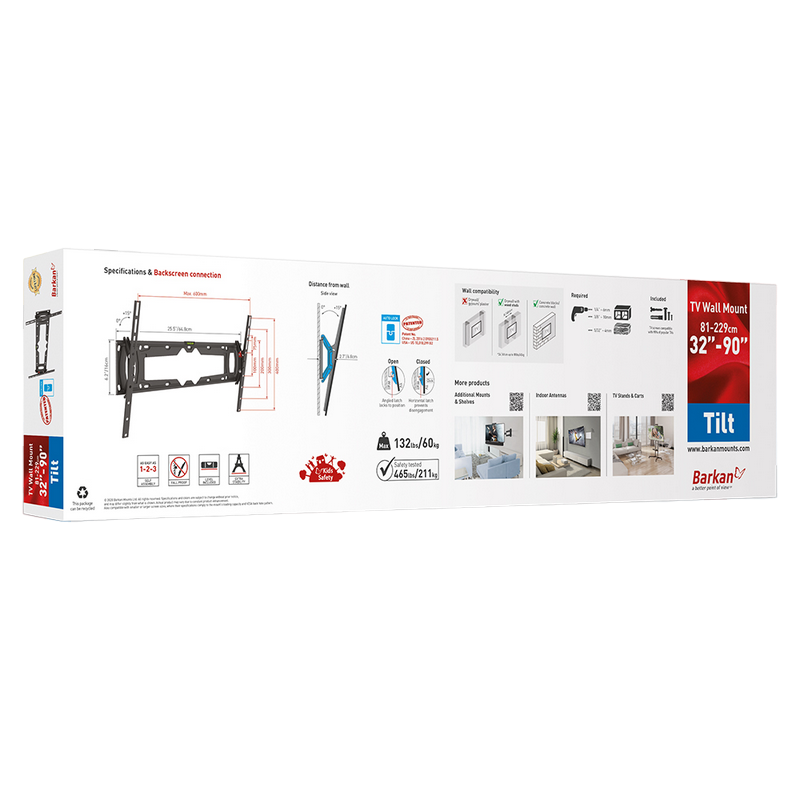 Wall Mount Barkan ''E410+'' Black 32" - 90" Tilt, max.60kg, VESA mm: up to 600x400mm