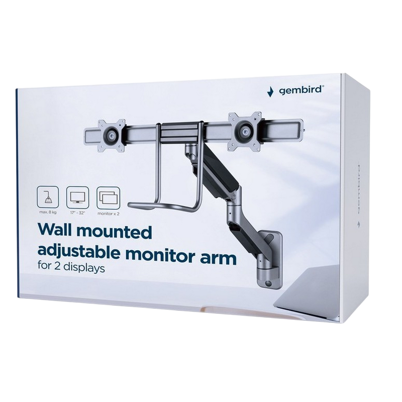 Wall mount for 2 monitors Gembird MA-WA2-02, 17"-32", per screen max.8kg, VESA: 75x75, 100x100