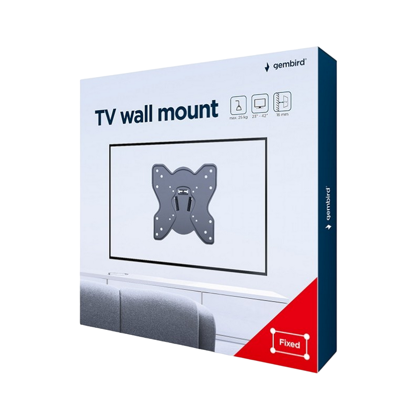 Wall Mount Gembird "WM-42F-03" Black 23"-42", max.25kg, VESA mm: up 200 x 200, Wall distance: 16mm