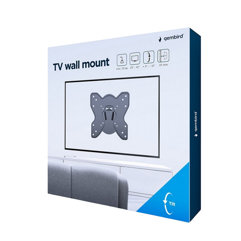 Wall Mount Gembird "WM-42T-03" Black 23"-42", max.25kg, VESA:up200x200, Wall dist: 50mm, +3° -12°
