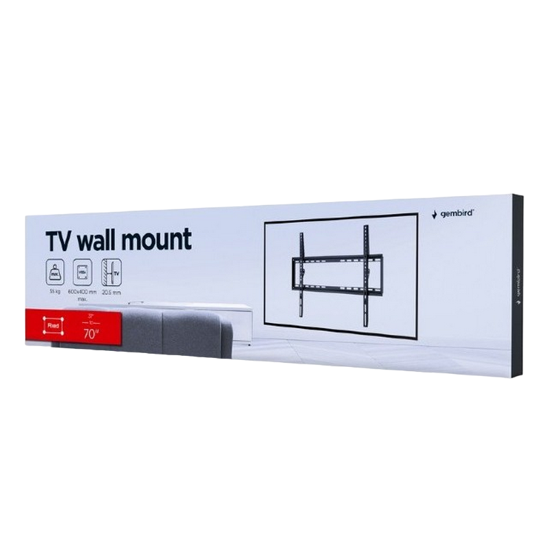 Wall Mount Gembird "WM-70F-03" Black 37"-70", 35kg, VESA:up 600x400, Wall distance: 21mm