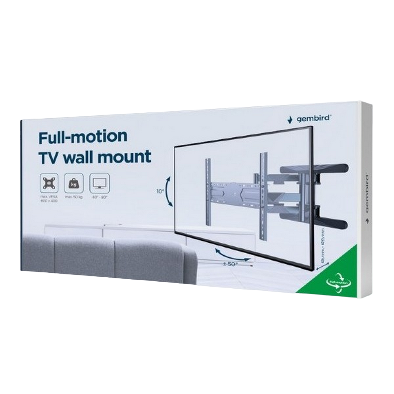 Wall Mount Gembird "WM-80ST-01" Black 40"-80", 60kg, VESA:up 600x400, Wall dist:48~493mm, ±50°