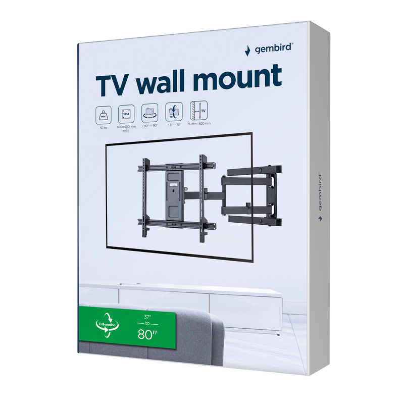 Wall Mount Gembird "WM-80ST-05" Black 37"-80", 50kg, VESA:up 600x400, Wall dist:76~620mm, ±50°
