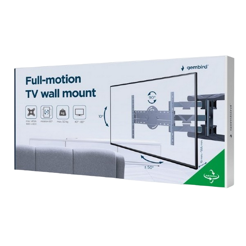Wall Mount Gembird "WM-80STR-01" Black 40"-80", 60kg, VESA:up 600x400, Wall dist:61 - 506mm, ±50°