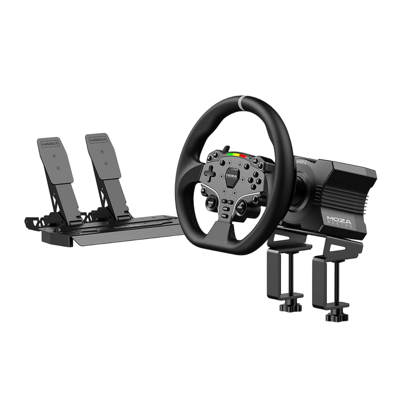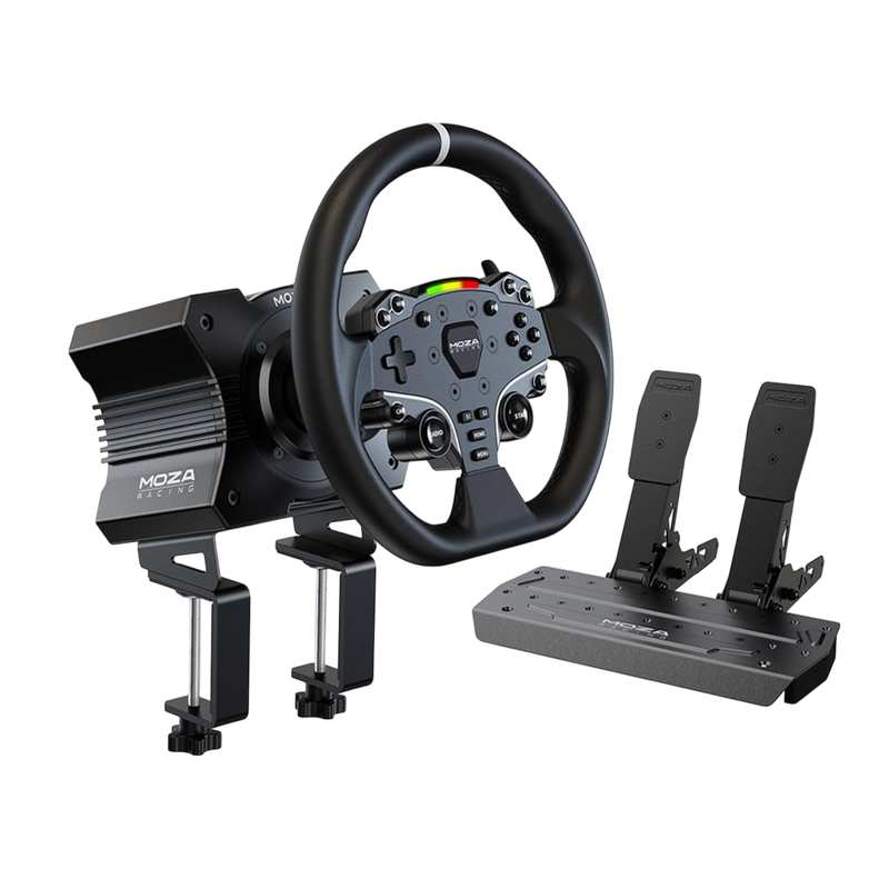 . DD R5 Platform PC FFB Drive System Direct Drive Max Steering Angle Infinite Rotation Housing Material Aviation Grade Aluminum Alloy Color Black Peak Torque S.SNm USB Refresh Rate 1000Hz Input Voltage 110V-220V AC ->12V DC Encoder Resolution 15 bits App Functions Supported Quick Release Supported Interface Power, Data, Display, Pedals, Wheel Input Accessories User manual. Warranty card. Power supply, USB cable, Toolkit Mounting Method 4 holes on the bottom Desktop Mounting Clip Standard Online Firmware Upgrade Supported Emergency Stop Switch Optional Firmware Upgrade Applicable ES Steering Wheel Wheel Material Microfiber Leather Frame and Front Plate Material Aluminum Alloy Dial Material Aluminum Alloy Size 11 inches Buttons 22 LED Lamp Beads 10 Intelligent Telemetry Supported Configurable LEDS (MOZA Pit House) Supported Disassembly method Quick Release System SR-P Lite Pedals Material High-strength Steel Plate Material High-strength Steel Color Black Pedal Sensor Type Hall Sensor Pedal Spacing Adjustable Pedal Plate Height Adjustable Pedal Input Adjustment Supported Pedal Input Reversal Supported Pedal Output Curve Adjustment Supported Anti-Slip Pad Included