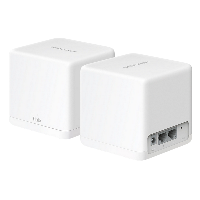 // 260 m² One Unified Network – With advanced Mesh Technology, Halo units work together to form a single unified whole home network with one WiFi name and password. Seamless Roaming – Automatically switch between Halos as you move around your home, always getting the best signal to enjoy the fastest connections for all your devices. Whole Home Coverage – Blanket up to 2,800 ft² (260 m²) with high-speed WiFi, eliminating WiFi dead zones at your home. 1.3 Gbps Dual Band WiFi – Halo H30G provides fast and stable connections up to 100 devices with speeds of up to 1,300 Mbps and works with major internet service providers (ISPs) and modems. Easy App Control – Use the MERCUSYS App to quickly set up and manage your WiFi. Full Gigabit Ports – 2× Gigabit ports per Halo unit for lightning-fast wired connections