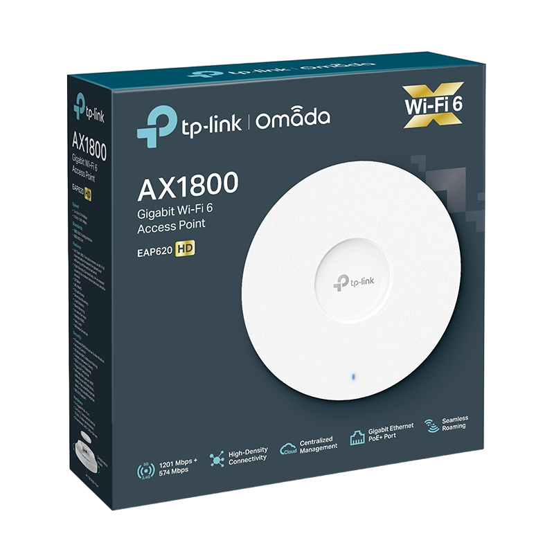 // 1000+ Concurrent Clients Support Ultra-Fast Wi-Fi 6 Speeds: Simultaneous 574 Mbps on 2.4 GHz and 1201 Mbps on 5 GHz totals 1775 Mbps Wi-Fi speeds.† High-Density Connectivity: 4× increased capacity to connect more devices simultaneously.‡ Integrated into Omada SDN: Zero-Touch Provisioning (ZTP)§, Centralized Cloud Management, and Intelligent Monitoring. Centralized Management: Cloud access and Omada app for ultra convenience and easy management. Seamless Roaming: Even video streams and voice calls are unaffected as users move between locations.△ PoE+ Support: Supports Power over Ethernet (802.3at) for convenient deployment and installation. Secure Guest Network: Along with multiple authentication options (SMS/Facebook Wi-Fi/ Voucher, etc.) and abundant wireless security technologies.