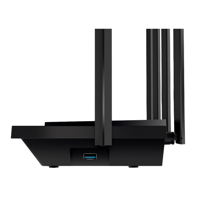 // Qualcomm Next-Gen 64-bit 1GHz Dual-Core CPU Gigabit WiFi for 8K Streaming – 5400 Mbps WiFi for faster browsing, streamings, and downloading, all at the same time.† Fully Featured Wi-Fi 6 – Equips with the top structure of 4T4R and HE160 on the 5 GHz band to enable a 4.8 Gbps ultra-fast connection. Connect 100+ Devices§ – Supports MU-MIMO and OFDMA to reduce congestion and quadruple the average throughput.‡** Extensive Coverage – 6× antennas and Beamforming ensure broad coverage. HomeShield – TP-Link's premium security services keep your home network safe with cutting-edge features for network and IoT protection.* More Vents, Less Heat – Improved vents area unleashes the full power of the whole machine. USB Sharing – 1× USB 3.0 port enables easy media sharing and private cloud building. Easy Setup – Set up the router in minutes with the Tether app.