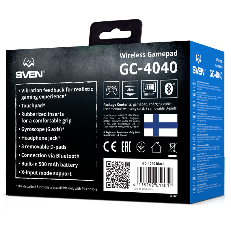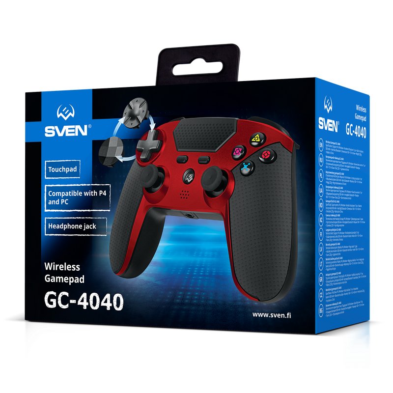 Wireless Gamepad SVEN GC-4040, 4 axes, D-Pad, 2 mini joysticks, 11 buttons, Vibration feedback, Touchpad, Gyroscope, 500mAh, 3.5mm, BT, Black/Red