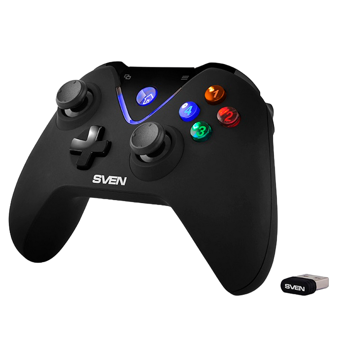 Wireless Gamepad SVEN GC-5070, 4 axes, D-Pad, 2 mini joysticks, 11 buttons, Vibration feedback, Soft-touch coating, Built-in battery, 2.4Ghz, Black