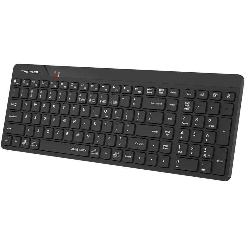 Wireless Keyboard A4Tech FBK23 AS, 12 Fn keys, Ultra Slim, Laser Inscribed Keys, up to 4 Devices, 4 Hotkeys, 1xAA, 2.4Ghz+BT, EN/RU/RO, Black